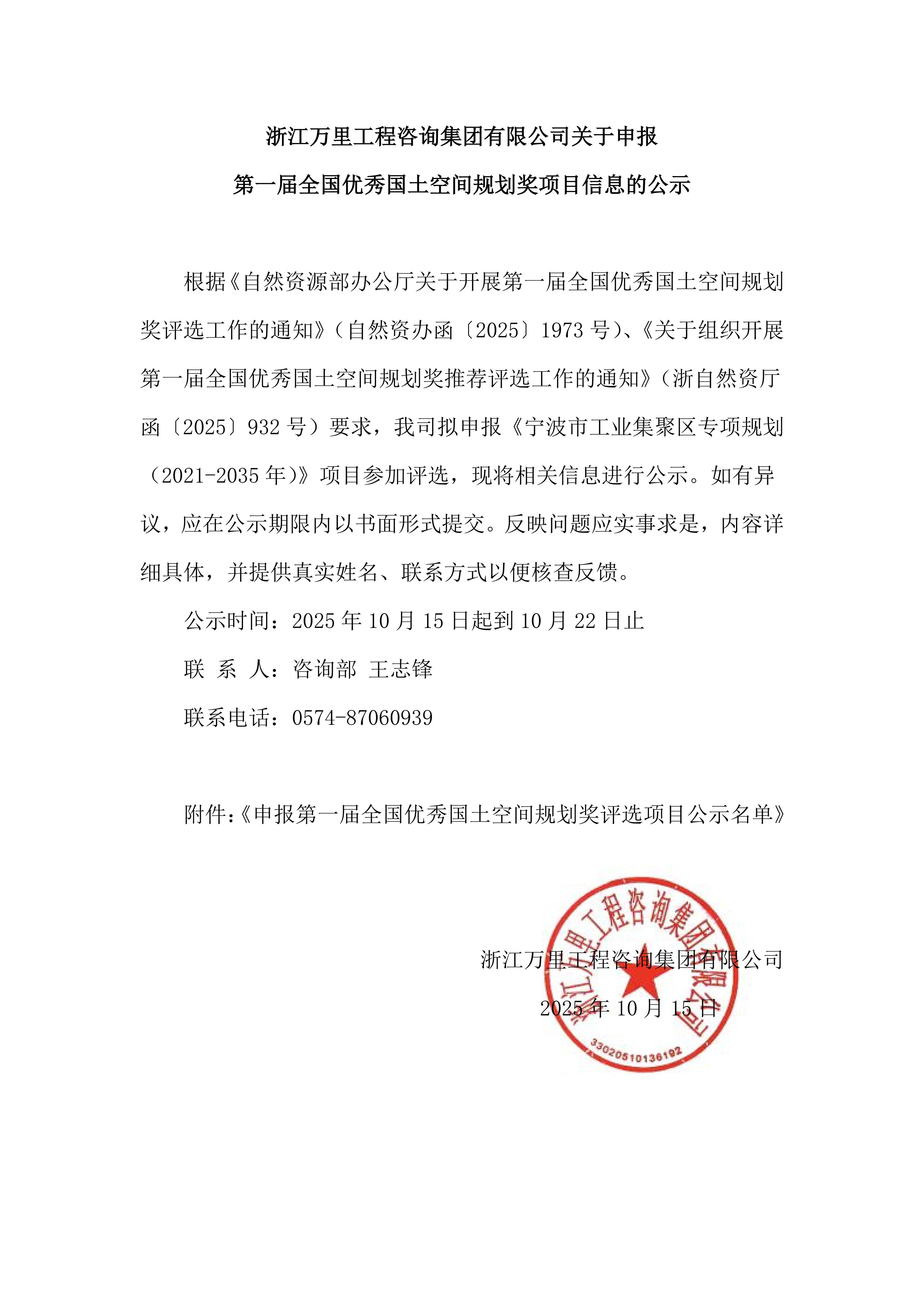 關于申報第一屆全國優(yōu)秀國土空間規(guī)劃獎項目信息的公示
